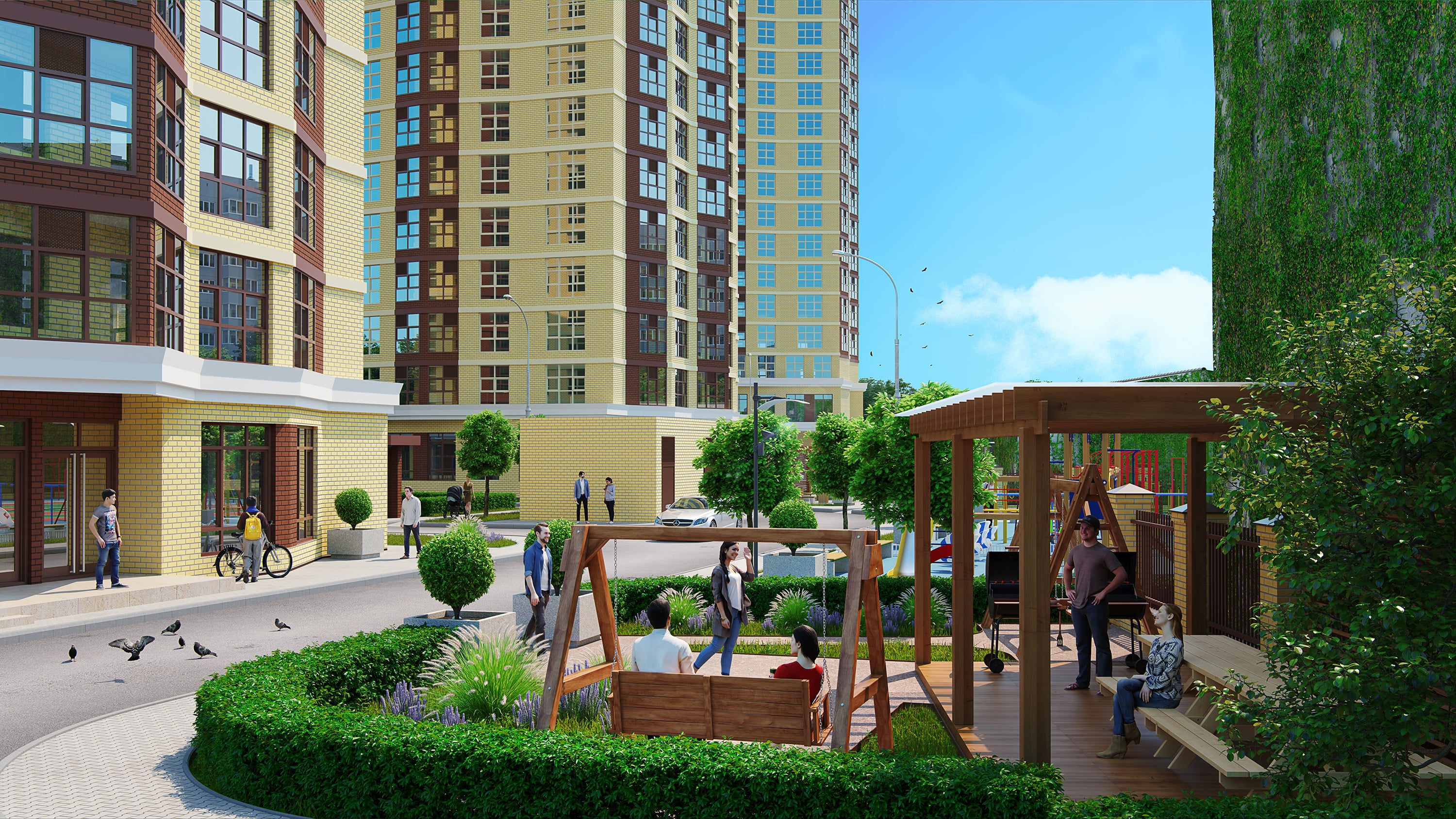 Удобный для жизни в центре города. Двор — закрытый и благоустроенный. Подземный паркинг — сквозной, через всю территорию комплекса. Котельная — крышная. Для дополнительного комфорта в доме есть большая игровая комната — полноценный спортивно-игровой комплекс для детей площадью 340 кв. м. В её составе — скалодром, ниндзя-парк, теннисный стол, мягкий городок для самых маленьких и воркаут-зона для подростков.